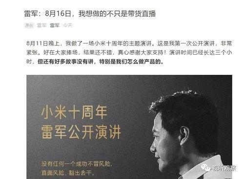 总的来说,这次雷军直播爆料视频给我们带来了很多惊喜。从新品的预告到生态链的布局,再到雷布斯的人生感悟,都让我们对小米的未来充满了期待。相信在雷布斯的带领下,小米会越来越好!亲爱的读者们,你们对这次直播有什么看法呢?欢迎在评论区留言分享哦!